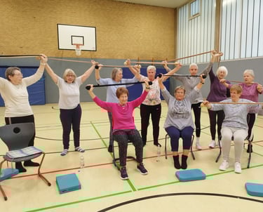 Durch vielseitige Bewegung fördern wir die Beweglichkeit des Körpers! Gleichgewichtstraining, Gedächtnistraining, Dehnübungen und vieles mehr in einer netten Runde.